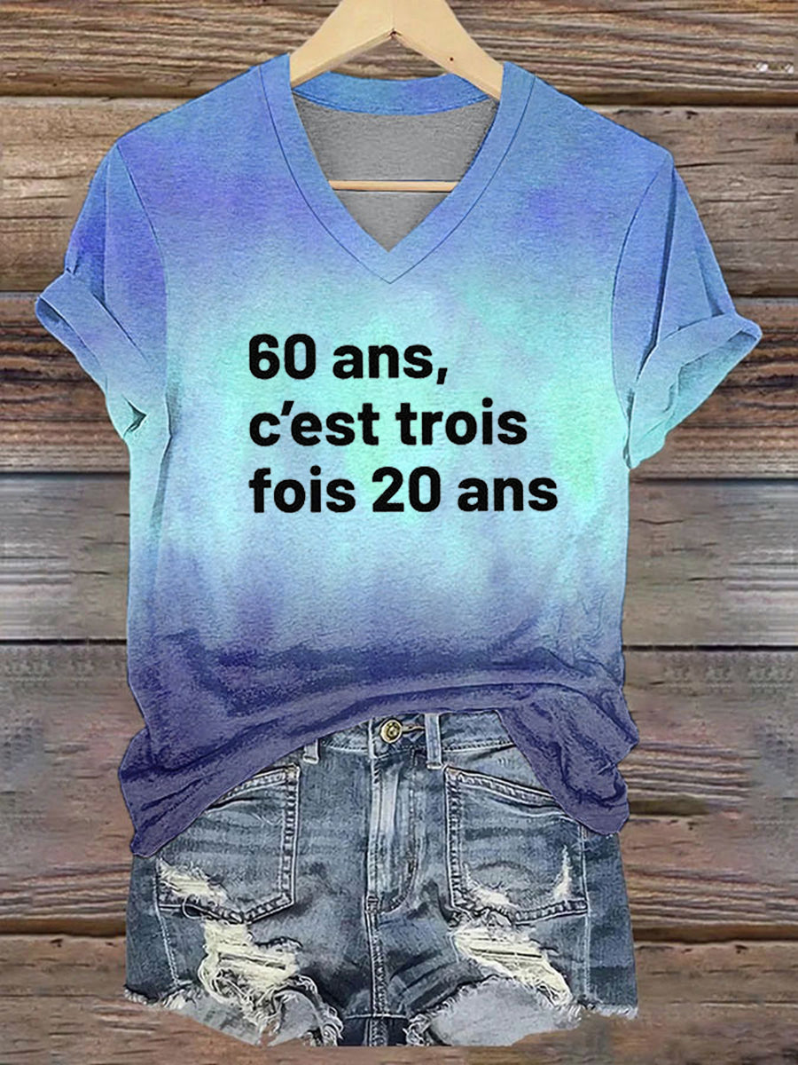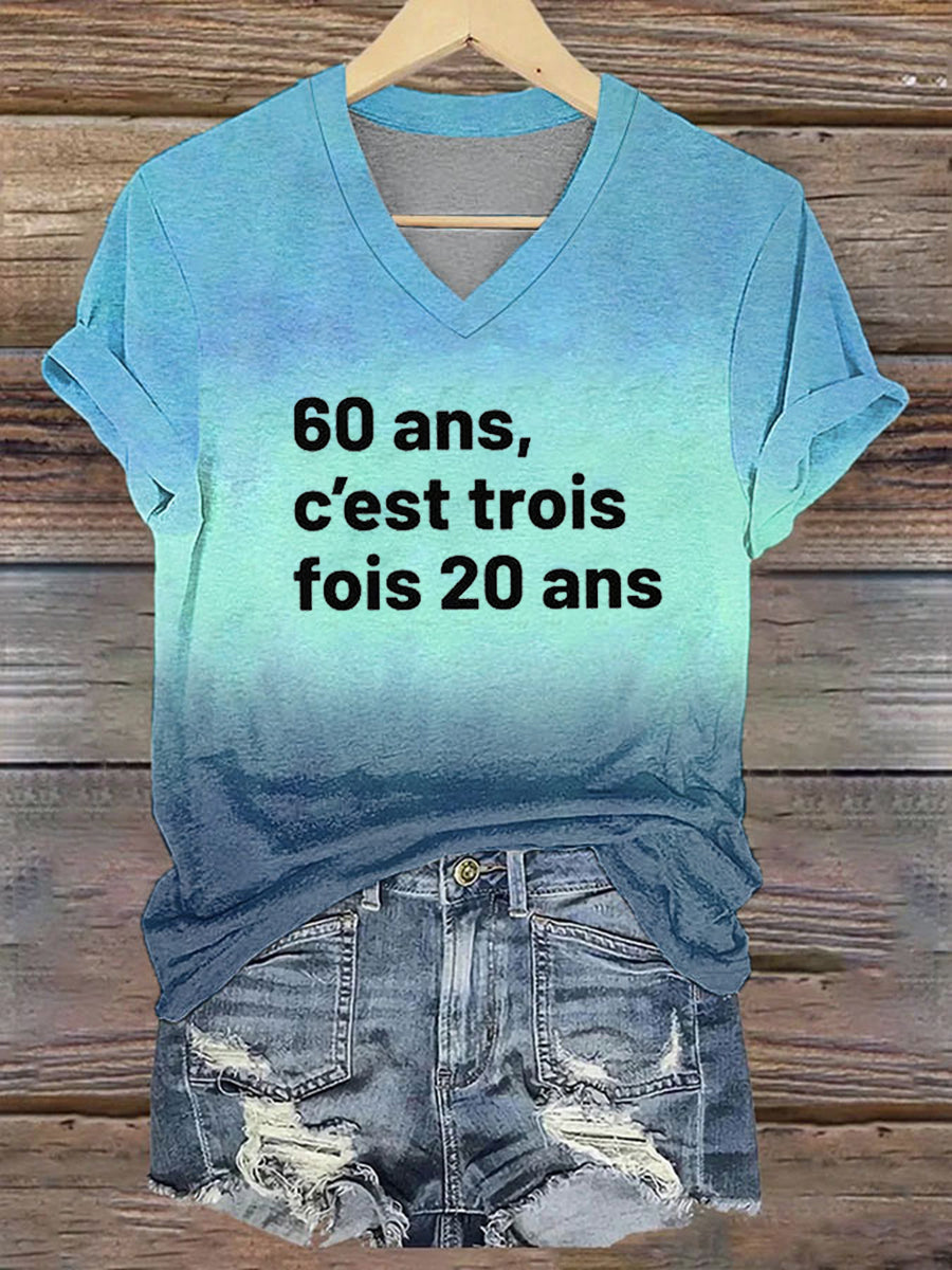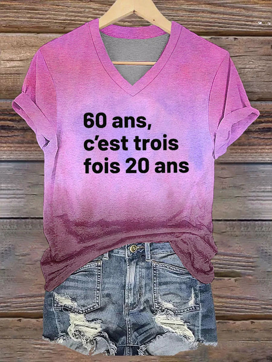 Tee-shirt col V imprimé Trois fois 20 ans noir Femme