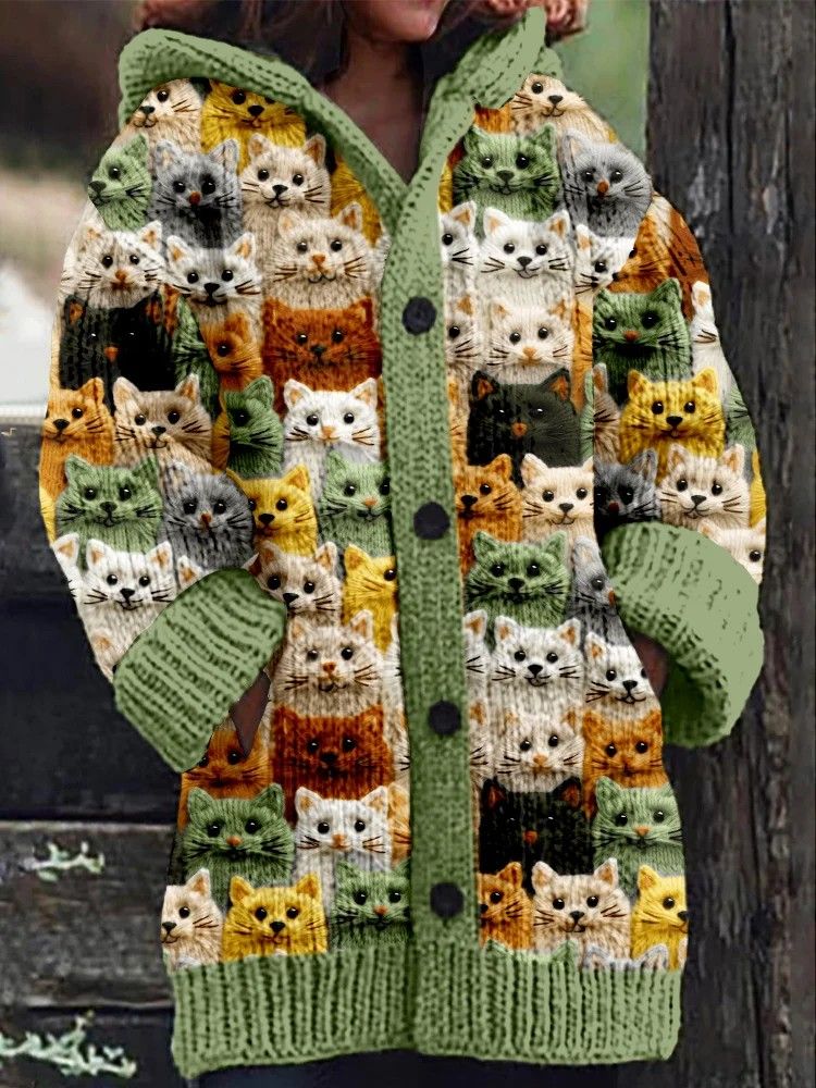 Veste chaude en flanelle à imprimé chat animal pour femmes