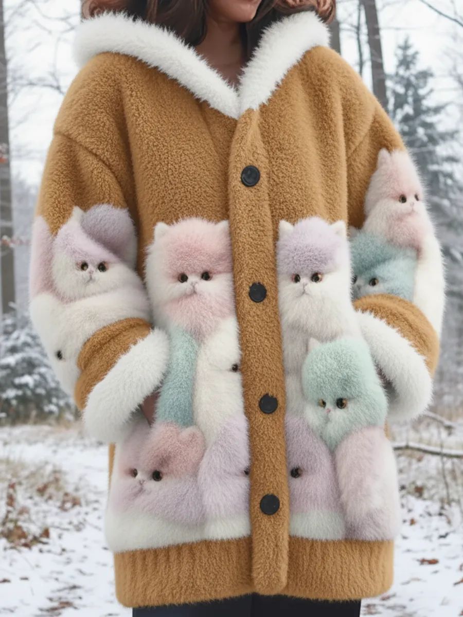 Veste chaude en flanelle à imprimé chat animal pour femmes