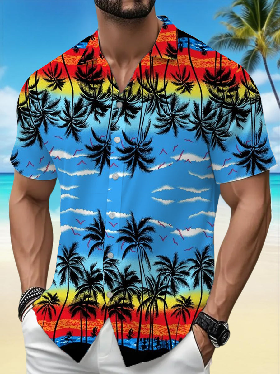 Chemise de vacances décontractée Sunset Palm Tree pour hommes