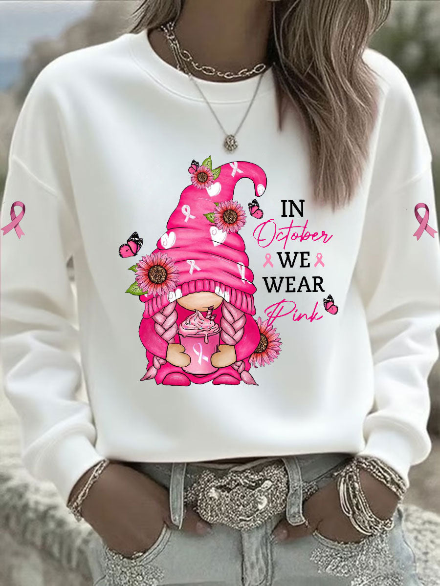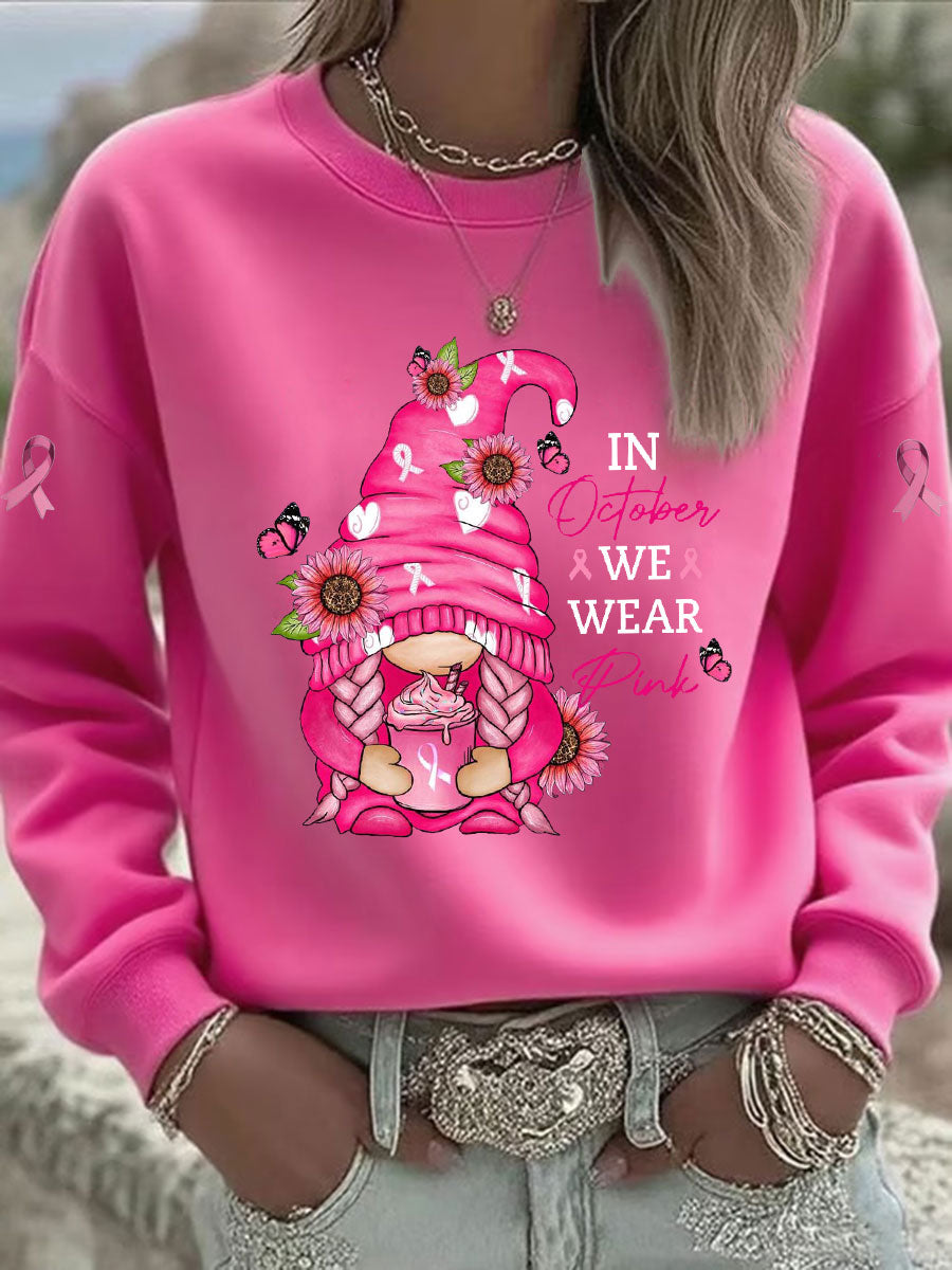 Sweat-shirt Décontracté Imprimé Ruban Rose Pour Femme