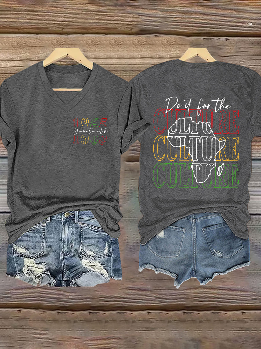 T-shirt à manches courtes à col en V imprimé Femme